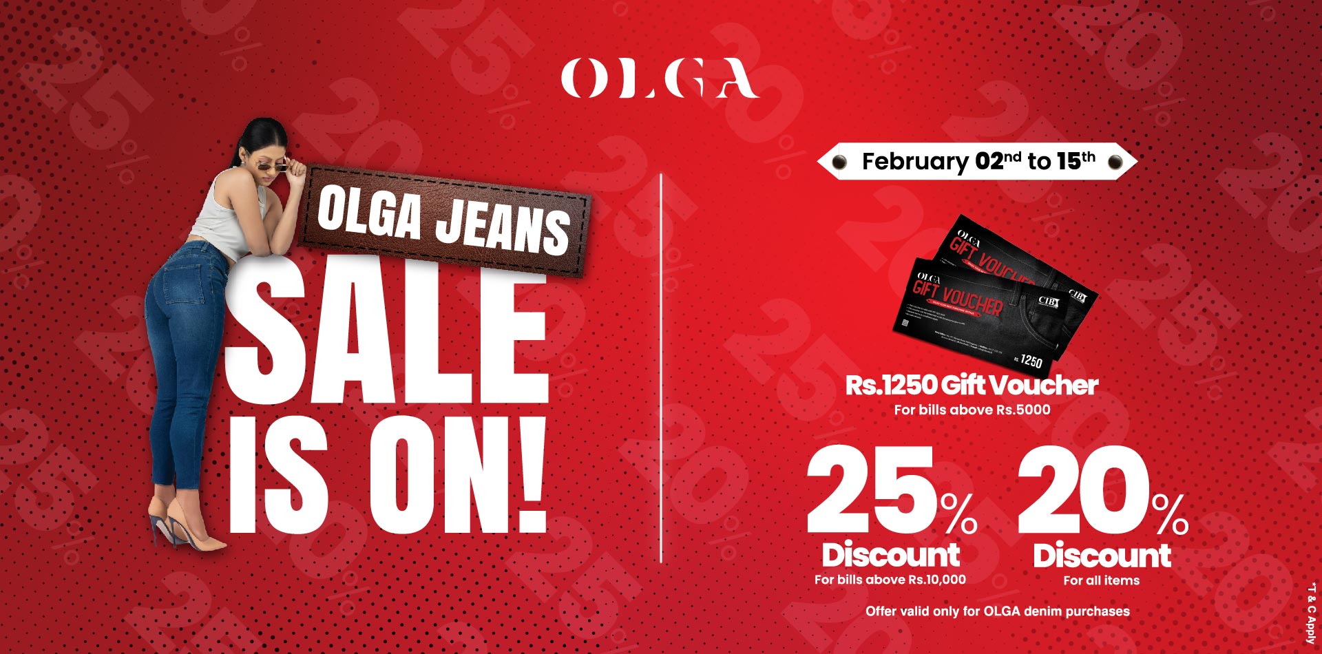 - 20% Flat Discount: Available on all OLGA denim items. No minimum spend, just pure style.