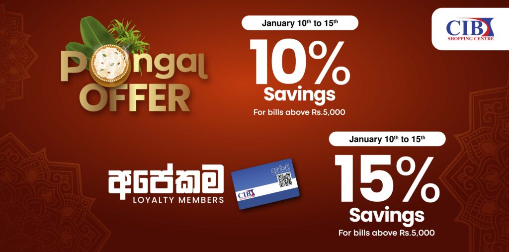 රු. 5,000 වැඩි බිල්පත් සඳහා, 10% ක වට්ටමක් සහ අපේකම කාඩ්පත් සාමාජිකයින් සඳහා 15% ක වට්ටමක් ද,