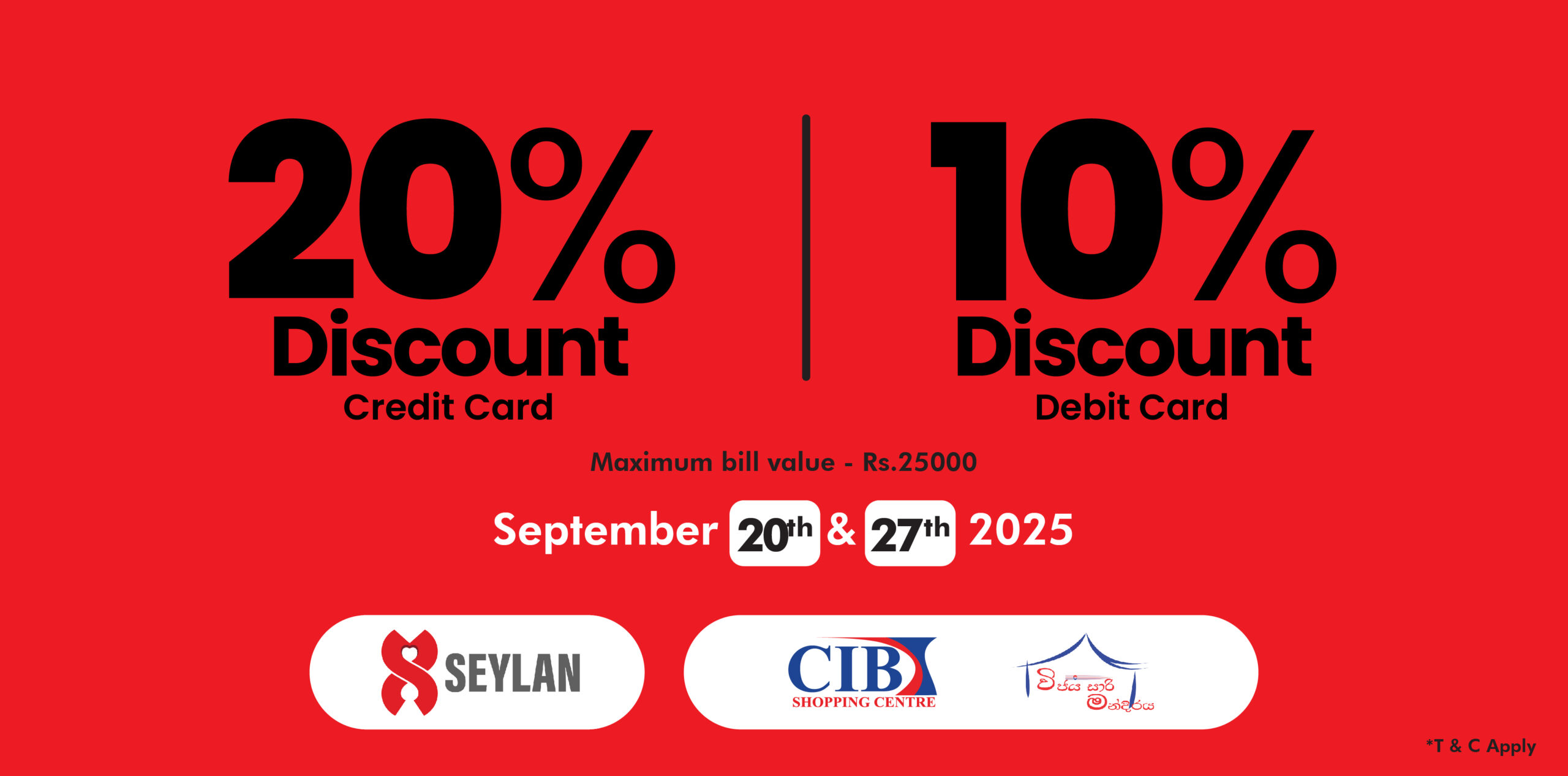 Enjoy special discounts when you shop this weekend with Seylan Bank Credit or Debit cards.
