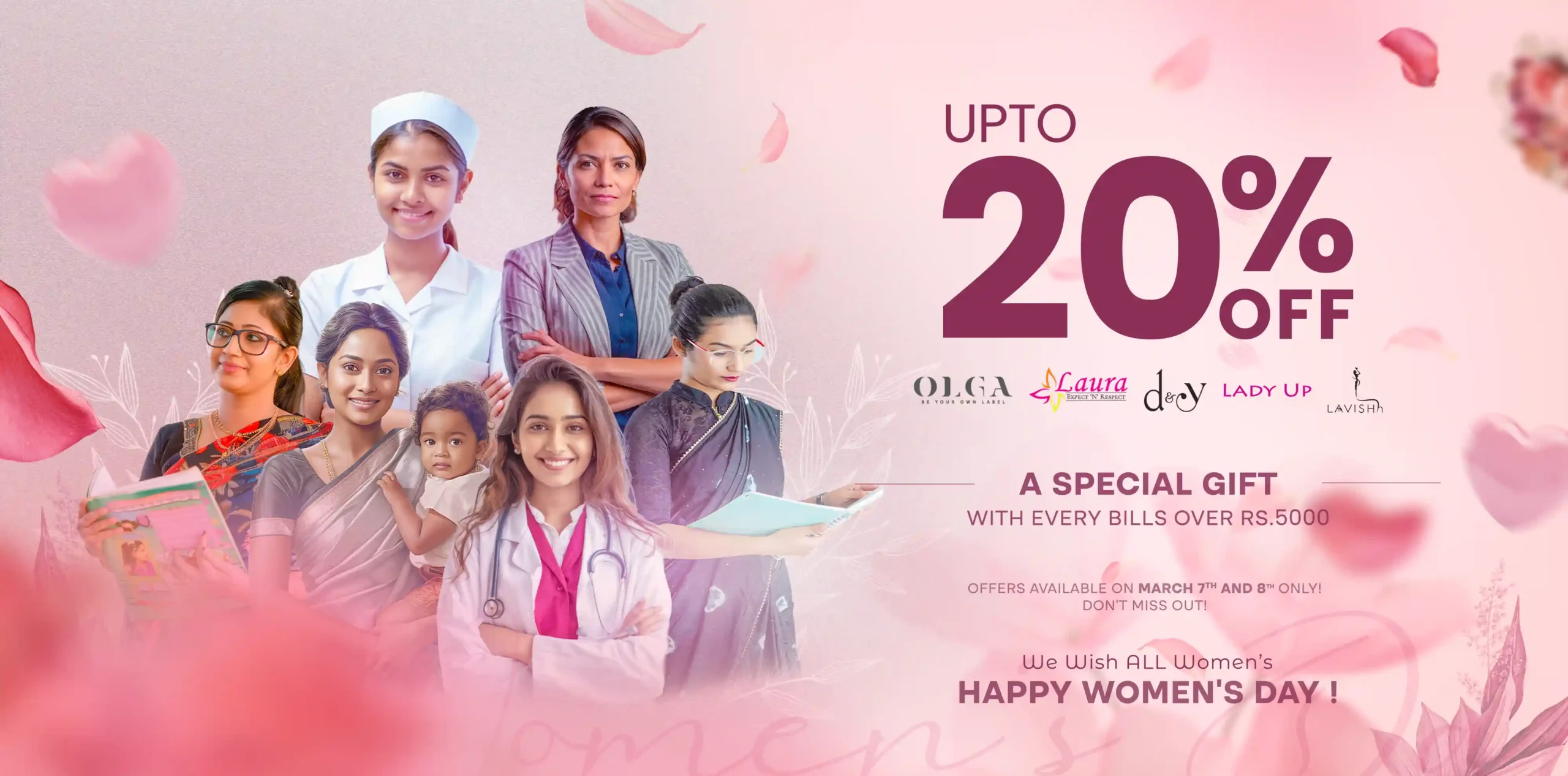 This Women’s Day, enjoy UP TO 20% OFF on our exclusive collections from OLGA, Laura, d & v, Lady Up, and Lavish.